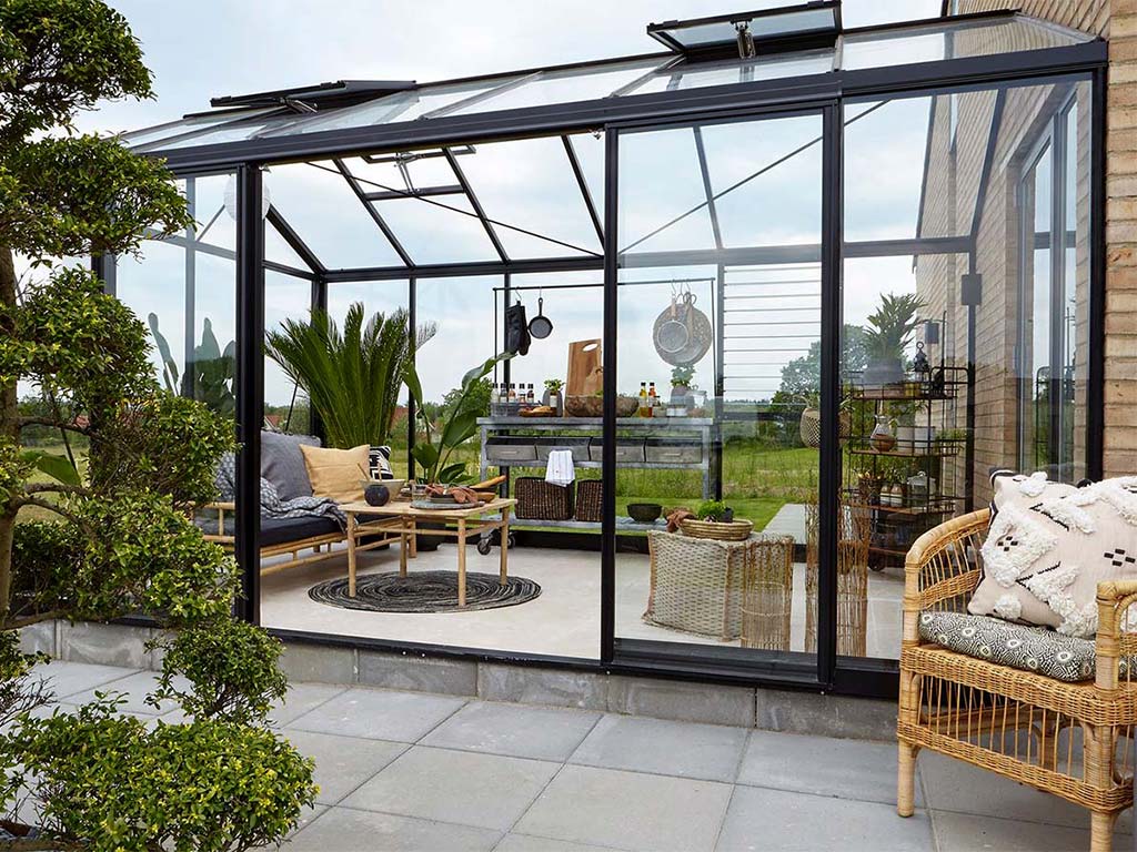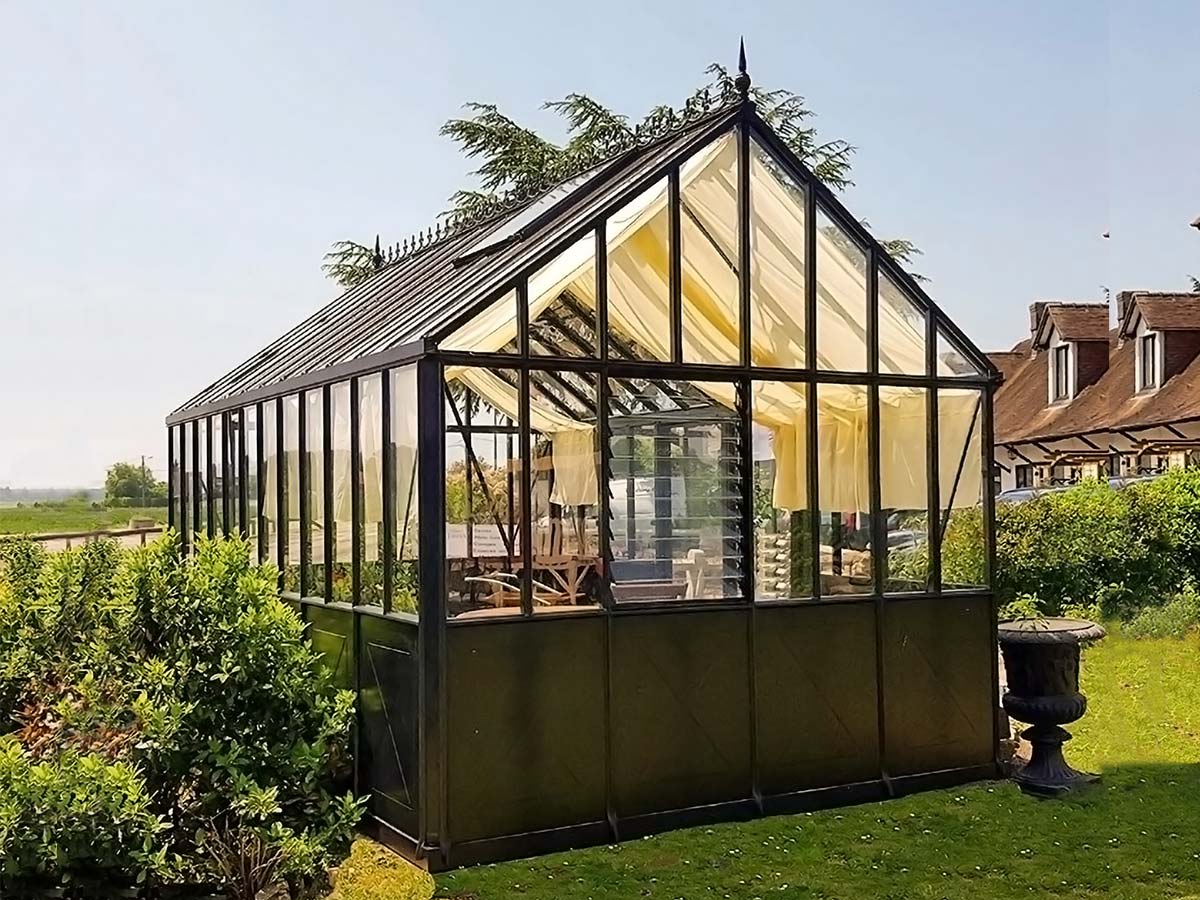 Tālāk jūs izvēlaties krāsu no pilnas RAL krāsu paletes. Visbeidzot, ir iespējas pievienot dekoru paneļus, novietot siltumnīcu pie sienas vai veidot to atbilstoši savām vēlmēm ar šaurākiem stikla paneļiem. Un protams neaizmirstiet par aksesuāriem un papildaprīkojumu, kas ievērojami uzlabo siltumnīcas iespējas!