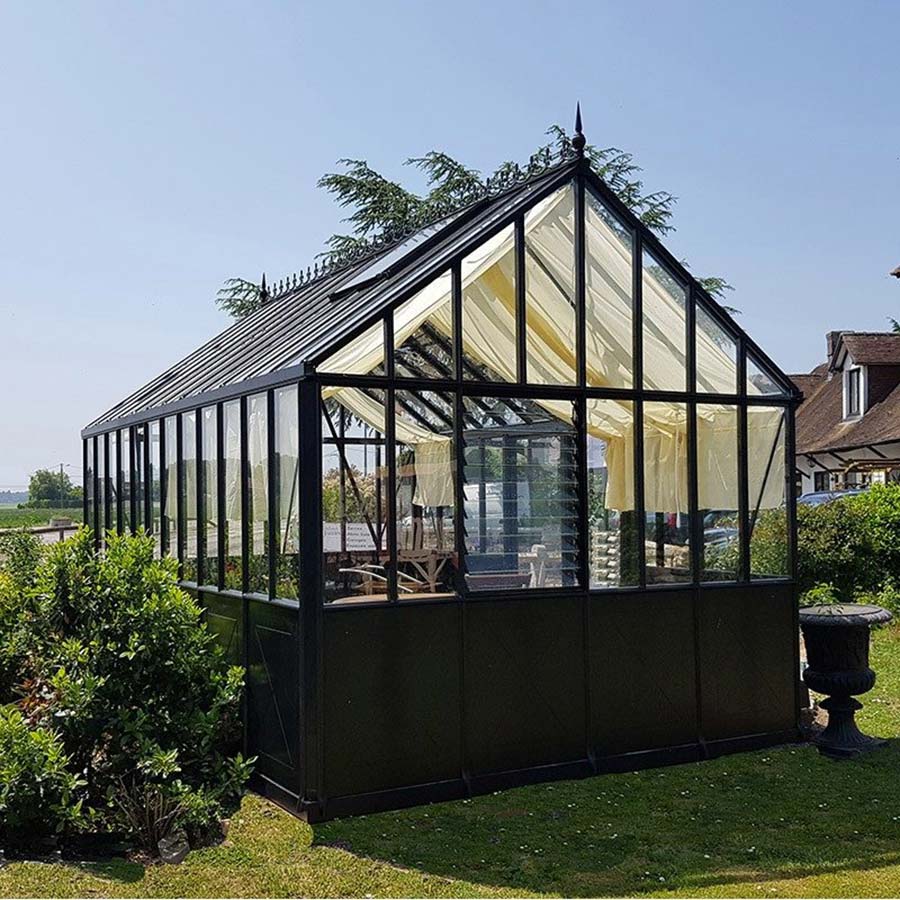- Siltumnīcas kores augstums ir 296 cm-314 cm atkarībā no platuma - šī ir īpaši augsta oranžērija